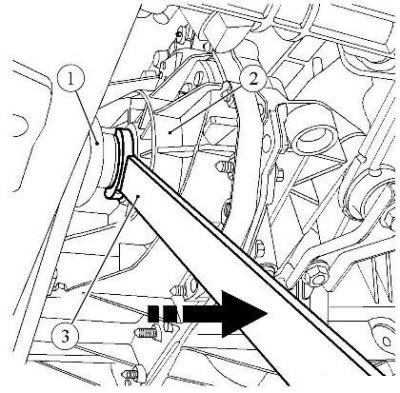 Извлечь хвостовик вала 4 привода левого переднего колеса из шарнира типа "трипод" коробки 3 передач.
